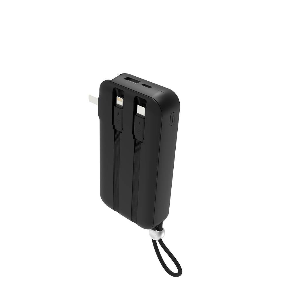 AC1003 Black AC Folding Plug 10000mah quick charge Power Bank built-in 2 cables with PD22.5W Wall Charger